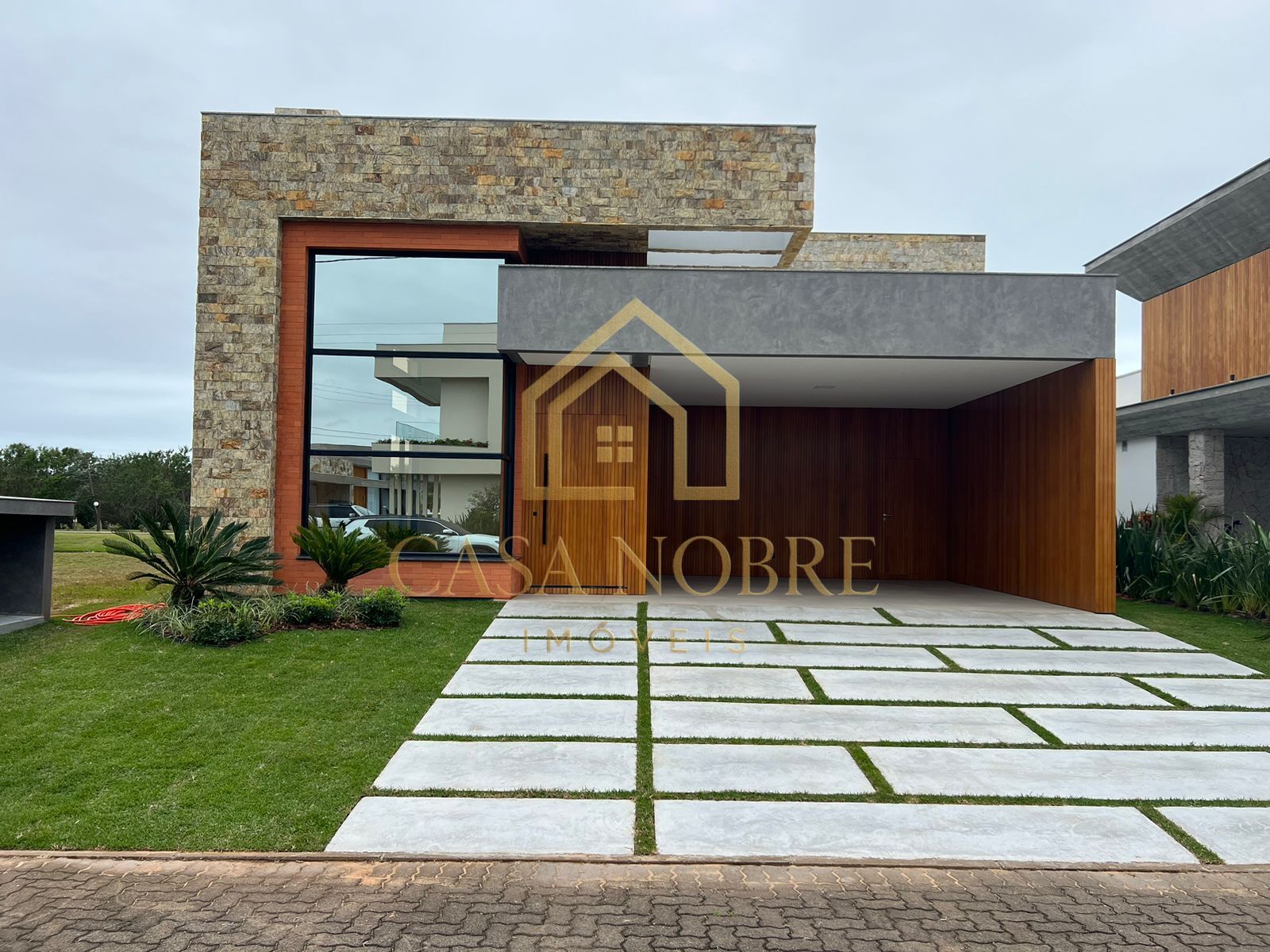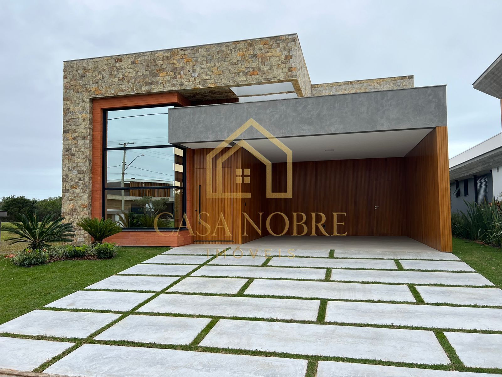 Com arquitetura moderna e sofisticada, esta casa foi projetada para unir design, conforto e exclusividade. A fachada imponente combina pedra natural, madeira e grandes panos de vidro, traduzindo elegância em cada detalhe.